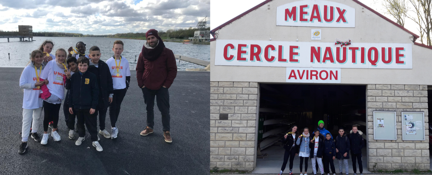 Les élèves de la classe « Aviron » du collège Henri Dunant ont brillé d’or pour les filles – Marion, Hawa, Elodie, Dayna barreur Florian et d’argent pour les garçons – Florian, Marion, Yacine, Madiane barreur Tom – lors du championnat académique Unss Aviron qui s’est déroulé à Vaires-sur-Marne mercredi 3 avril